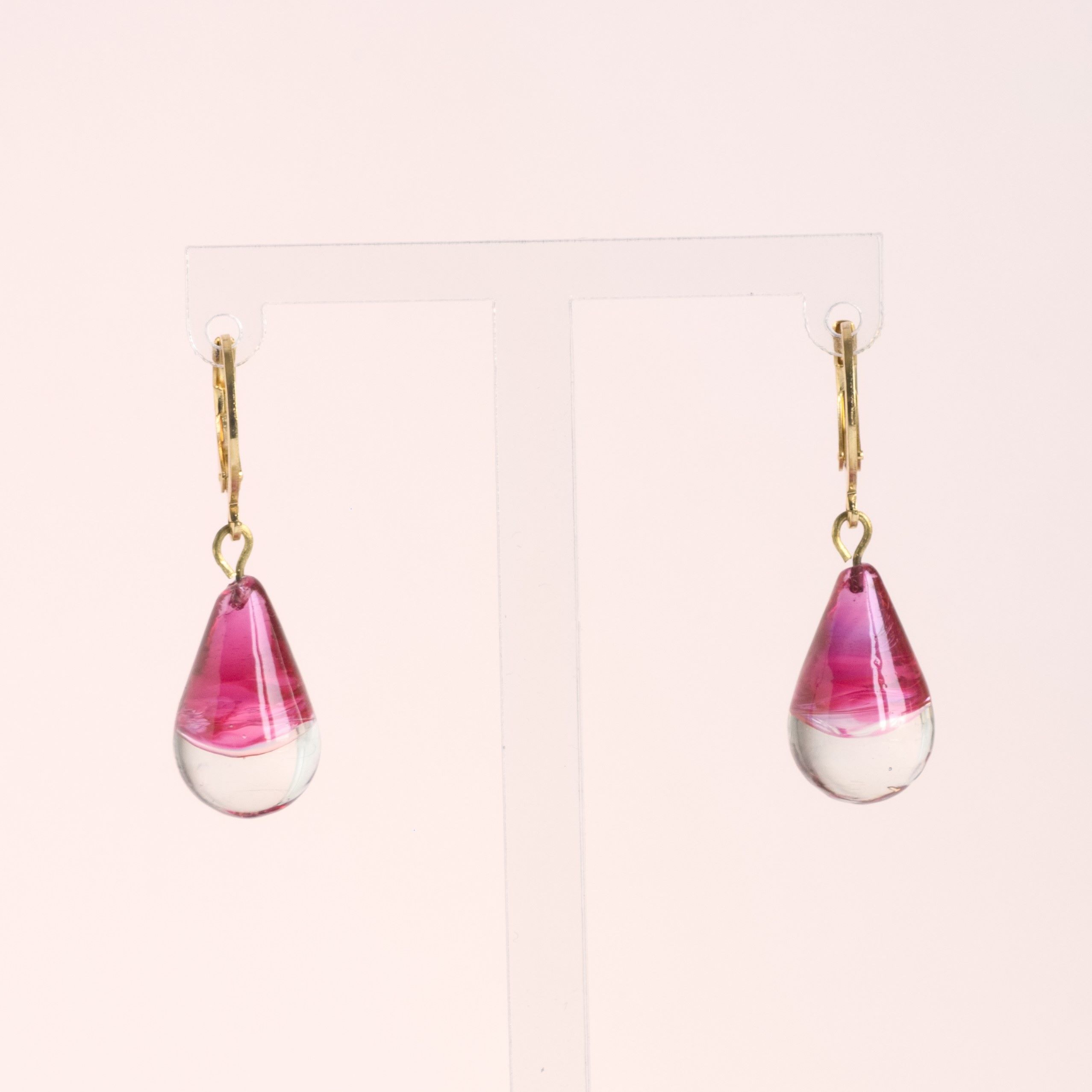 Une touche d’élégance magique à vos oreilles avec ses boucles d’oreilles en verre de Murano incolore et rose à l’or