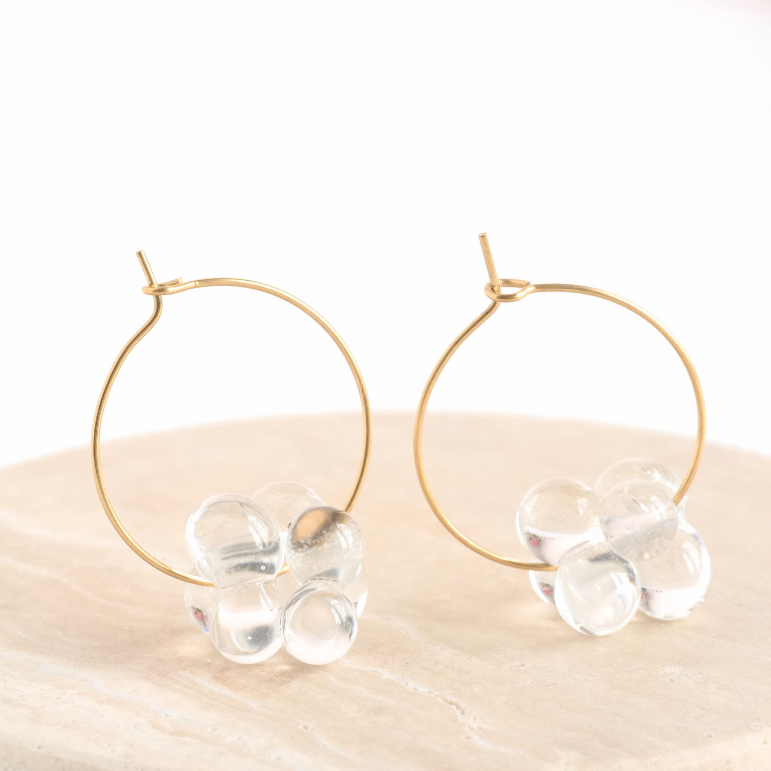 | Matériaux | Verre de Murano et créole en acier inoxydable doré à l'or 18k |